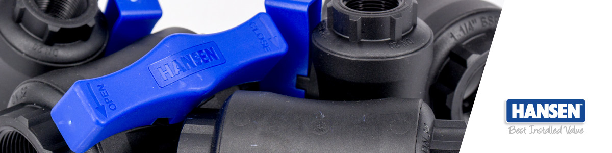 Hansen's range of Full Flow Ball Valves have been designed for use in, above, or below ground in fluid distribution lines. The valves are strong, lightweight, compact and provide smooth unrestricted leak free on/off control. The Hansen Full Flow Ball Valve range will function across a wide range of operating pressures and temperatures and can be used anywhere the flow of liquid needs to be stopped or started. Hansen’s Ball Valves have been approved by the International Marine Certification Institute to ISO standard 9093-2, and they meet the requirements of the Recreational Craft Directive 94/25/EC.