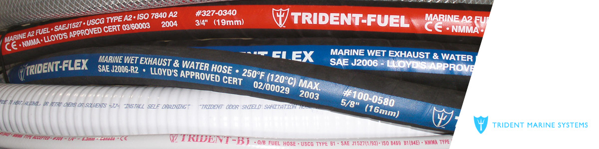 - GMS Store holds extensive stocks of Trident marine hose; in sizes from ¼" to 15" diameter, available in PVC, rubber or silicon. The hose is suitable for applications such as exhaust, salt water, sanitation, fuel, potable water, coolant and more.