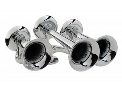 Kahlenberg Chimetone Air Horns all utilize more than one projector or “trumpet” in their design. These projectors each produce a different fundamental frequency which combine to produce powerful, distinctive, musical chords. To hear a Chimetone Air Horn is to realize that the sound of a vessel can be one of its most impressive aspects. The Model T-2 Air Horn is designed for the most discriminating yachtsman. It is made entirely of bronze and brass, and is triple plated for a deep chrome finish.