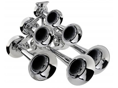 Kahlenberg Chimetone Air Horns all utilize more than one projector or “trumpet” in their design. These projectors each produce a different fundamental frequency which combine to produce powerful, distinctive, musical chords. To hear a Chimetone Air Horn is to realize that the sound of a vessel can be one of its most impressive aspects. The Model KDT-123 Air Horn is designed for the most discriminating yachtsman. It is made entirely of bronze and brass, and is triple plated for a deep chrome finish.