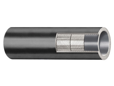 Extremely durable EPDM (ethylene propylene diene monomer) synthetic rubber liner tube and cover, 2-ply fabric reinforced. Suitable for engine coolant water, air conditioning, and other mid-pressure water applications. Resistant to coolants, heat, cold, ozone, saltwater.