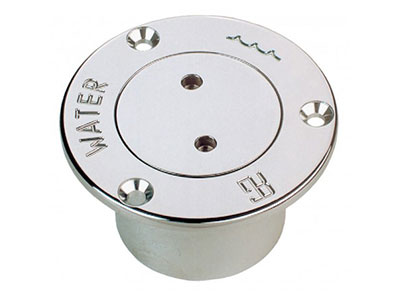 “WATER” labelled deck filler, in chromium-plated brass.