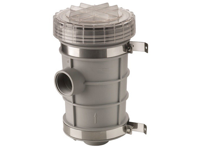 Cooling water strainer with transparent cover for easy inspection of the filter content. The cooling water strainer type 1320 is provided with adjustable brackets for bulkhead mounting and is available with 3 different threaded connection diameters. Cleaning of the filter can be achieved quickly and easily. Due to the large active surface however, the filter seldom needs to be cleaned.