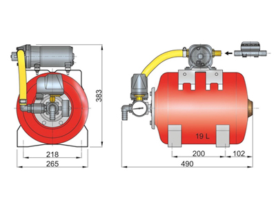 Type HYDRF works the same as the basic pressurised water system type HF, but has an adjustable pressure switch, a manometer (pressure gauge) and an additional non-return valve. Meets the EMC requirements.