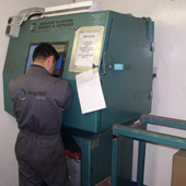 It allows items up to 0.5m x 0.5m x 1.0m and 180kg to be placed on the turntable. The most regularly used media is aluminium oxide; it enables our fabrication and service departments to achieve the broadest range of finishes, including welding preparation, paint preparation and descaling.